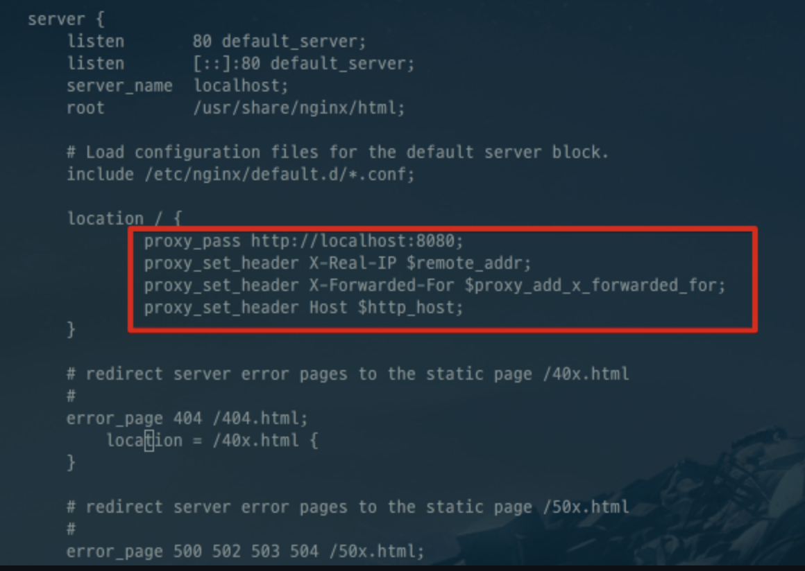 - proxy_pass : 서버로 요청이 오면 해당 url 로 전달한다는 뜻.